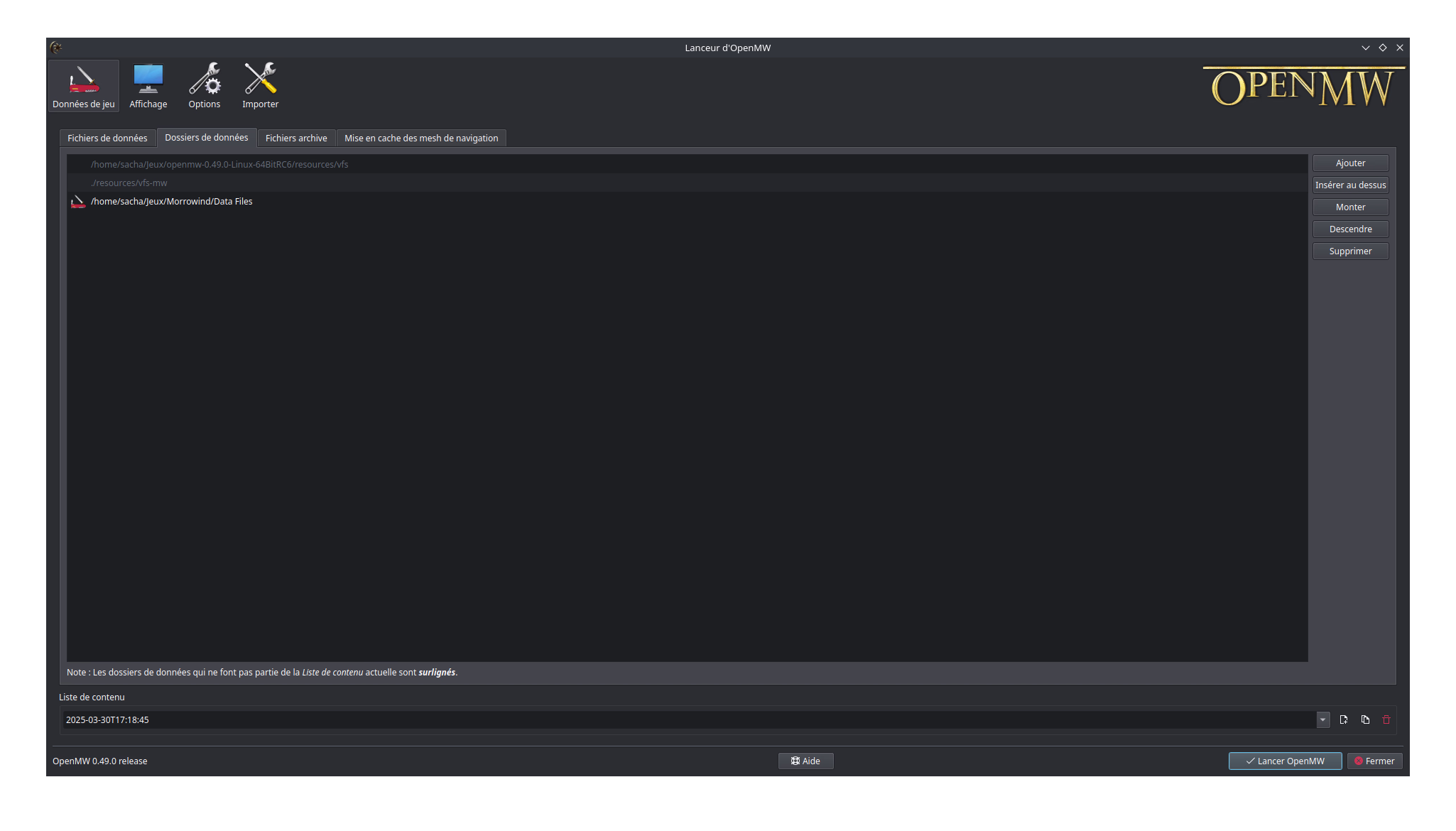 Parcourez le reste de cette interface pour modifier les options à votre guise. Quand vous serez prêt, cliquez sur Lancer OpenMW.