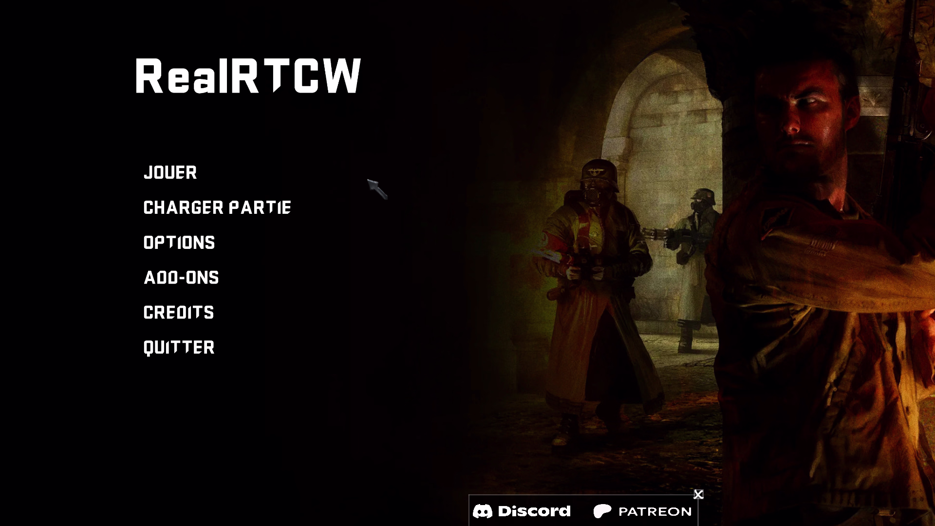 Une fois les fichiers en place, il suffit de lancer RealRTCW, d'aller dans "Addons" et de sélectionner le mod qu'on souhaite jouer.